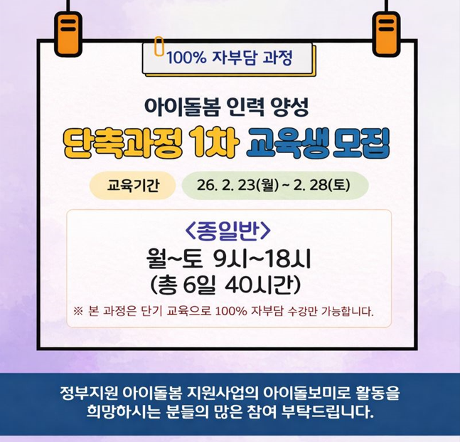 `26년 1차 아이돌봄 인력 양성 자격자(단축) 과정